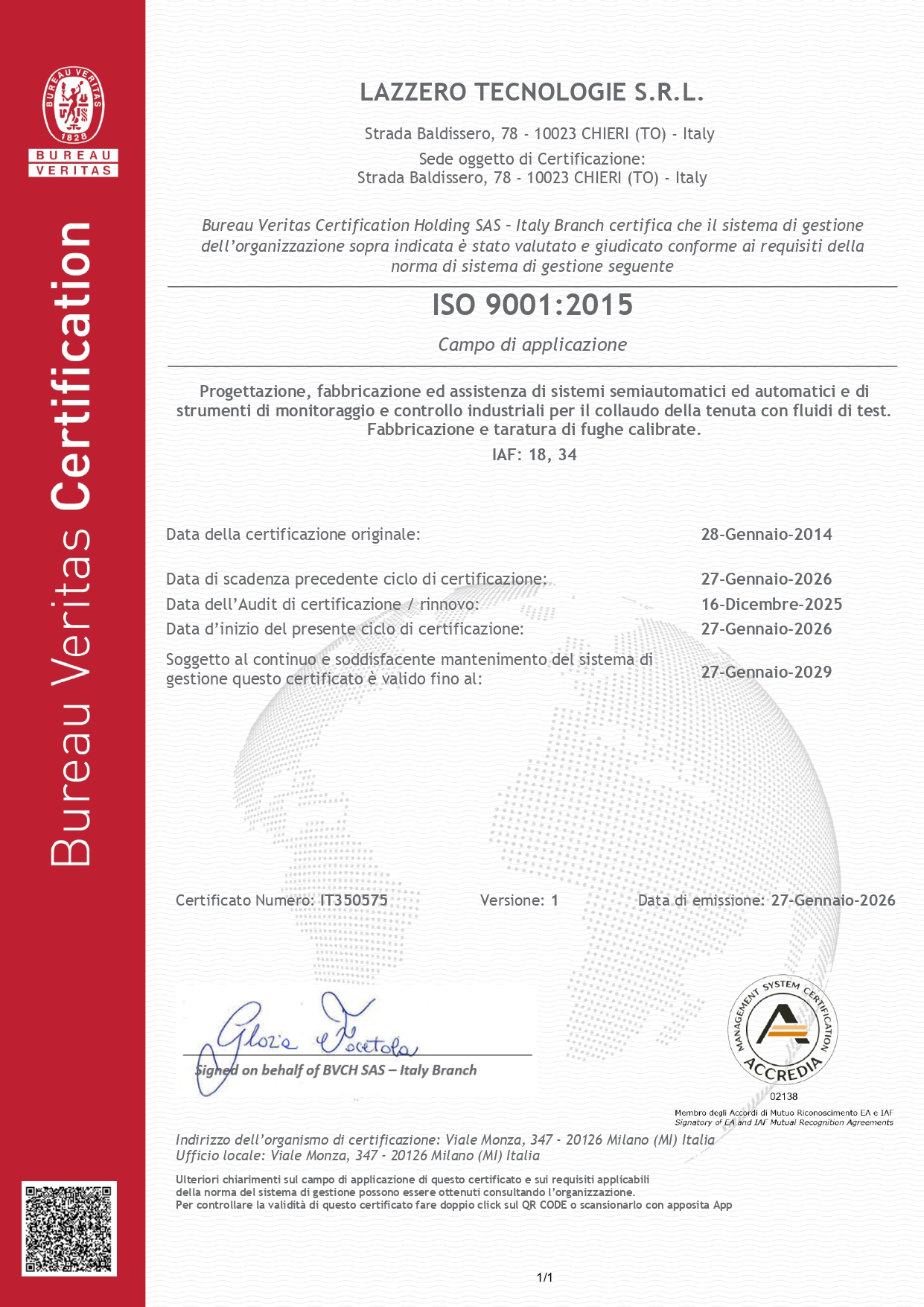 Le Certificazioni ISO 9001:2015 e ISO 14001:2015 della LAZZERO Tecnologie S.r.l.
