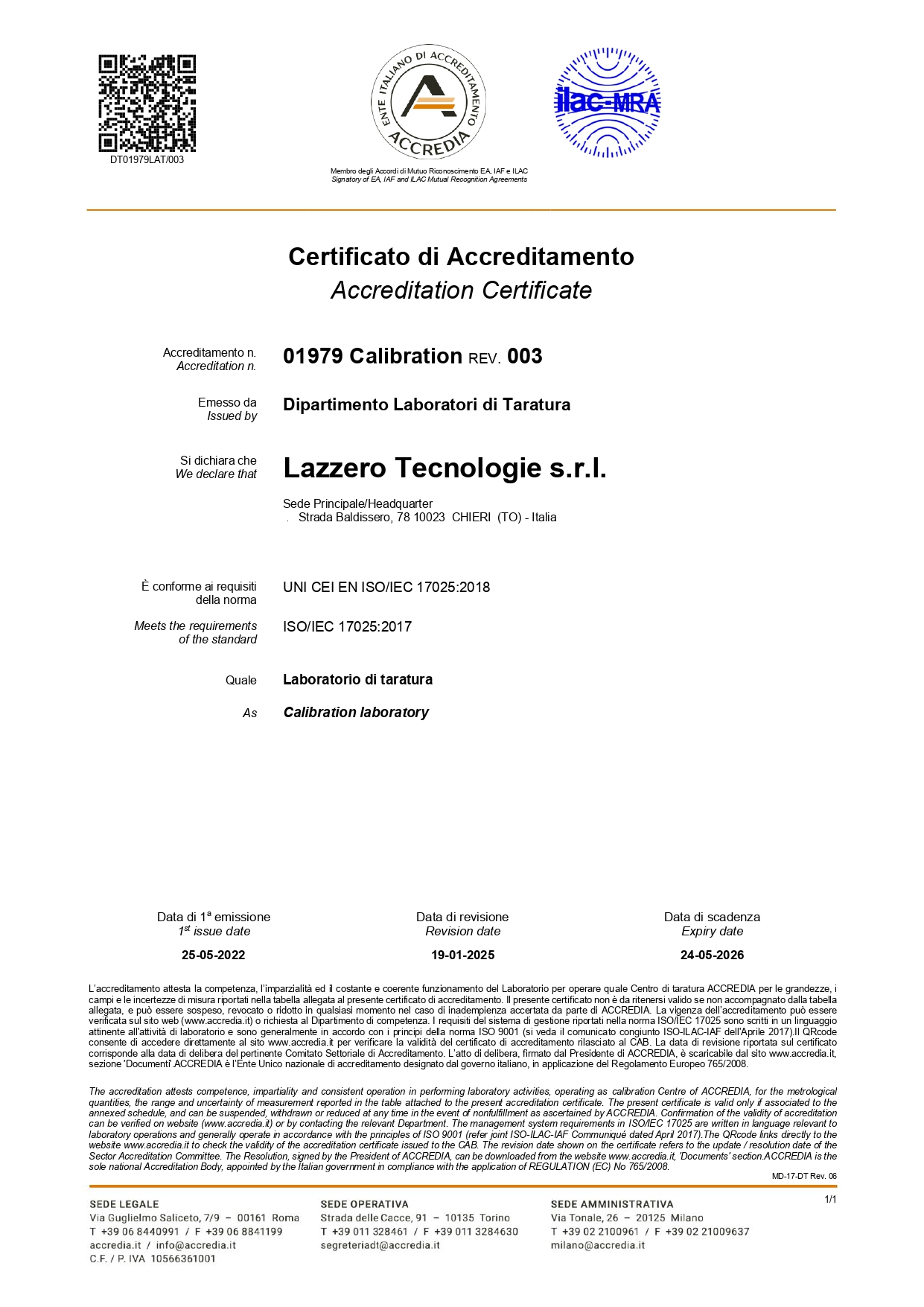 Nel dicembre 2010 la LAZZERO Tecnologie S.r.l., a riprova del continuo miglioramento dei processi industriali e della propria organizzazione interna, ha ottenuto le Certificazioni UNI EN ISO 9001:2008 e UNI EN ISO 14001:2004, regolarmente rinnovate, fino alla transizione, nel gennaio 2017, alle nuove norme UNI EN ISO 9001:2015 e UNI EN ISO 14001:2015.